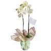 Caja alargada con 7 orquídeas cimbidium y follajes variados, con moño y tarjeta