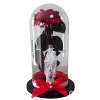 Caja con botella de vino tinto, 12 rosas y 12 fresas cubiertas y decoradas con chocolate