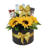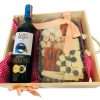 Caja con tabla de quesos, madurados, fresas y alfajores para uno